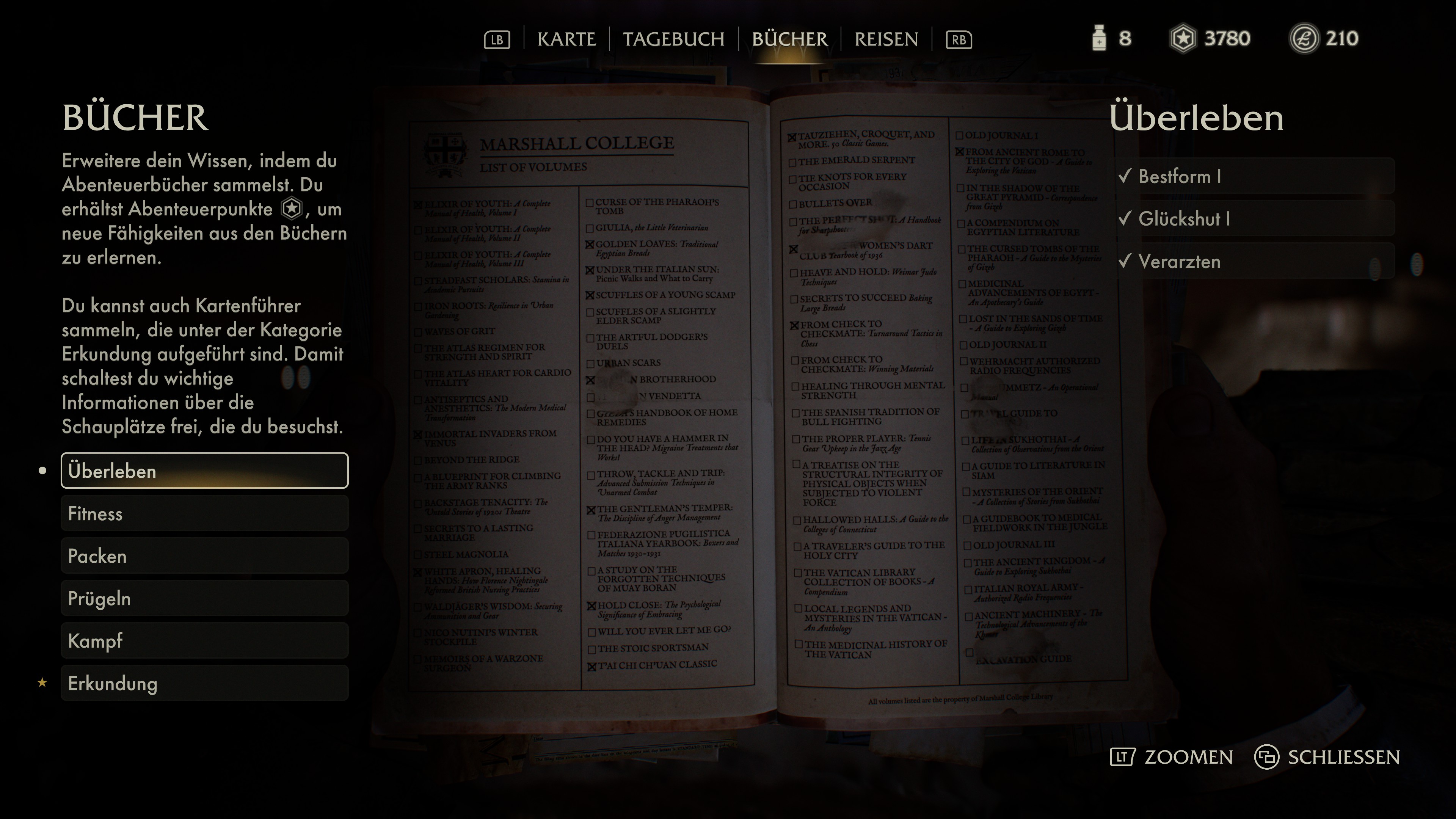 "Indiana Jones und der Große Kreis" wurde von Machine Games entwickelt und von Bethesda Softworks veröffentlicht. All das spielt sich selbstverständlich unter der Schirmherrschaft von Lucasfilm Games ab. Das Action-Adventure steht seit dem 09.12.2024 in den (virtuellen) Regalen der Händler. Die Handlung von "Indiana Jones und der Große Kreis" spielt zeitlich zwischen den beiden Filmen "Jäger des verlorenen Schatzes" (1981) und "Indiana Jones und letzte Kreuzzug" (1989). Natürlich ist das virtuelle Abenteuer unseres Lieblings-Archäologen von den gennanten Filmen inspiriert. Dabei geht Indy in dem neuesten Action-Adventure von Lucasfilm Games dem Mysterium des Großen Kreises auf den Grund. Ein weiteres Mal sieht sich der US-Archäologe dabei den Nazis gegenüber. Auch wenn die Nazis die "Hauptgegner" sind, wird Indy im Verlauf der Handlung auch mit Faschisten der weiteren Achsenmächte konfrontiert. So sieht er sich im Vatikan den Anhängern Benito Mussolinis ("Schwarzhemden") gegenüber. Zudem muss sich Indiana Jones in Shanghai gegen die mit Nazi-Deutschland paktierenden Japaner behaupten. Der diabolische Antagonist ist dabei der Nationalsozialist und Archäologe Emmerich Voss. Neben diversen Gegenspielern hat Indy in "Indiana Jones und der Große Kreis" glücklicherweise auch einige Mitstreiter. Verbündeter von Indiana Jones ist neben Marcus Brody (Dekan von Indys Universität) auch Pater Antonio (Leiter der apostolischen Bibliothek im Vatikan). Zudem steht die Enthüllungsjournalistin Ginetta "Gina" Lombardi an Indys Seite. Ein weiterer Gegenspieler von Indiana Jones ist wiederum der den italienischen Faschisten nahestehende Pater Ventura. Darüber hinaus muss sich unser Lieblings-Archäologe in seinem neuesten Abenteuer mit dem glühenden Nationalsozialisten Oberst Gantz herumschlagen. Ein integraler Bestandteil von "Indiana Jones und der Große Kreis" sind zahlreiche unterschiedliche Rätsel. Generell gilt, das Erkundung, Rätsel und Action die drei Säulen des Spielprinzips sind. Der Schwerpunkt liegt dabei eindeutig auf der Adventure-Komponente (Erkundung, Rätsel). Zudem bringen die freischaltbaren Fähigkeiten ("Perks") dezente Rollenspielelemente in "Indiana Jones und der Große Kreis". Des weiteren bietet das Action-Adventure von Machine Games viele Nebenmissionen und Sammelgegenstände. Insbesondere liefert die detaillierte Spielwelt ständig neue Entdeckungen. Die Aktivitäten in "Indiana Jones und der Große Kreis" lassen sich in die Kategorien Abenteuer, Feldforschung, Geheimnisse und Entdeckungen einordnen. "Abenteuer" sind dabei die Hauptabenteuer mit dem Ziel, das Geheimnis des Großen Kreises zu lüften. "Feldforschung" ist in "Indiana Jones und der Große Kreis" die Bezeichnung für die lokalen Nebenmissionen abseits der Haupthandlung. Sie sind optional und fügen sich zumeist in die übergeordnete Handlung ein. "Feldforschungen" verdeutlichen dabei die Hintergründe der NPCs und ihre Beziehungen zueinander. Für den erfolgreichen Abschluss von "Feldforschungen" bekommt Indiana Jones wertvolle Abenteuerpunkte (Freischalten von Fähigkeiten) oder eine Belohung in klingender Münze (Kauf von Gegenständen und Büchern). "Geheimnisse" sind in größeren Abschnitten verfügbar. Sie sind von der Spielzeit kompakter gestaltet als "Feldforschungen". Als Belohung winken auch hier Abenteuerpunkte. "Entdeckungen" erstrecken sich hingegen über größere Abschnitte bzw. sogar das ganze Spiel. Zum Abschluss einer Entdeckung gilt es, die Welt zu erforschen und seltene Objekte (insbesondere die sog. "Uralten Relikte") zu finden, die mit der Entdeckung zu tun haben. Alle Aktivitäten lassen sich im Tagebuch von Indiana Jones verwalten. Mit der "A"-Taste eures Controllers lässt sich die jeweils verfolgte Aktivität (Abenteuer, Feldforschung, Geheimnisse, Entdeckungen) aufschalten. Eine wichtige Rolle in "Indiana Jones und der Große Kreis" spielen die (Abenteuer-) Bücher. Diese finden sich zum einen direkt in der Spielwelt. Zudem lassen sich die in Rede stehenden Bücher für Geld in den geheimen Boxclubs des Action-Adventures kaufen. Schließlich könnt ihr die Bücher auch gegen Medizinflaschen (auffindbar in der Spielwelt) bei Ärzten und Apotheken eintauschen. Eine Liste der gesammelten (Abenteuer-) Bücher findet sich im Tagebuch unter dem Reiter "Bücher". Die zum Freischalten der in den (Abenteuer-) Büchern enthaltenen Fähigkeiten notwendigen Abenteuerpunkte erlangt der Spieler durch den Abschluss von Aktivitäten, Fotos und gefundene Sammelobjekte.
