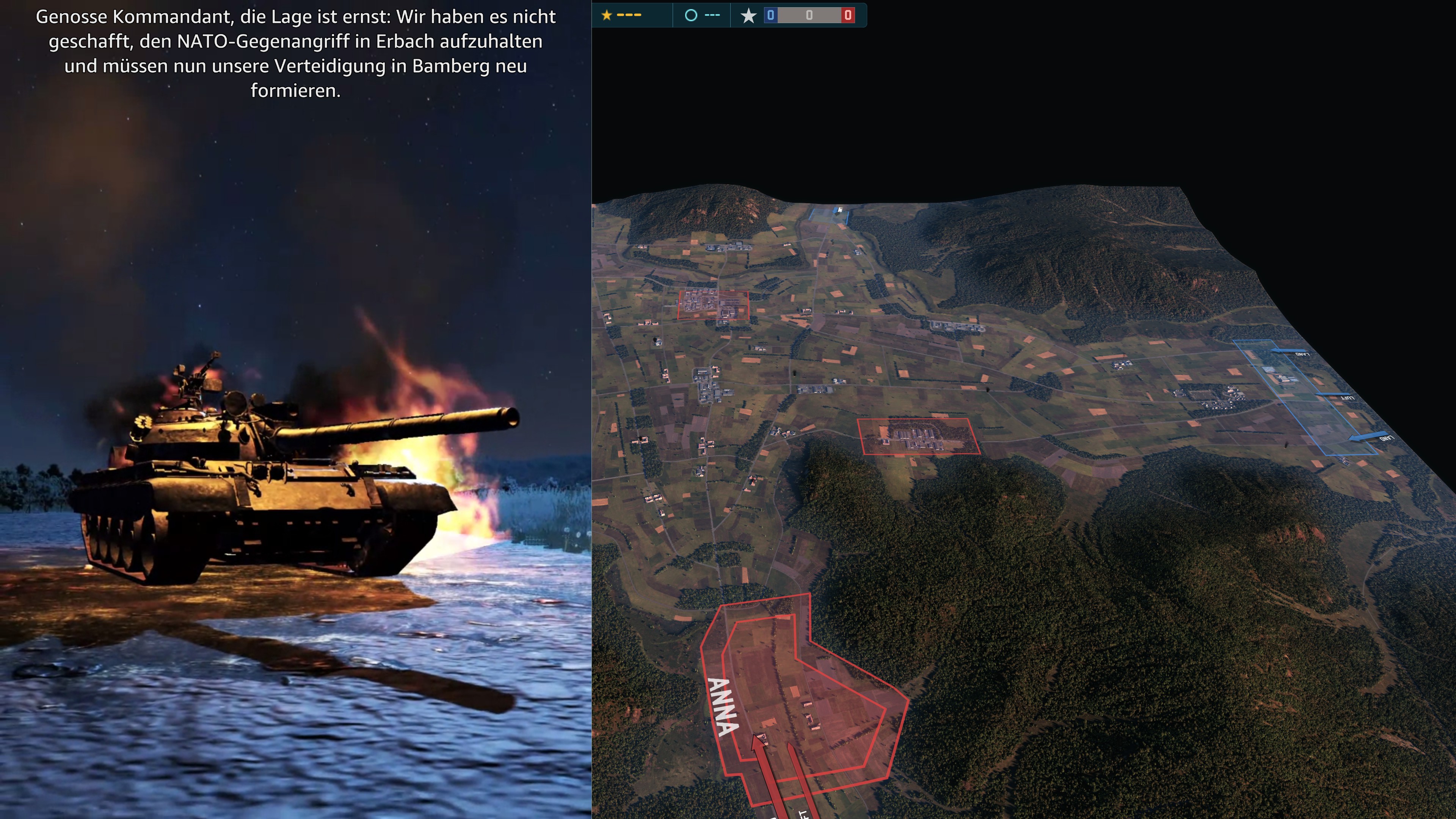 - derzeit bietet WARNO acht "Operationen" für den Singleplayer-Modus. Bei diesen handelt es sich um klassische Szenarios, die ihr auf unterschiedlichen Seiten bestreiten könnt. Die atmosphärischen Einsätze bieten dabei Videos, Briefings und Funksprüche. Zudem sorgen diverse geskriptete Ereignisse dafür, das keine Langeweile aufkommt.