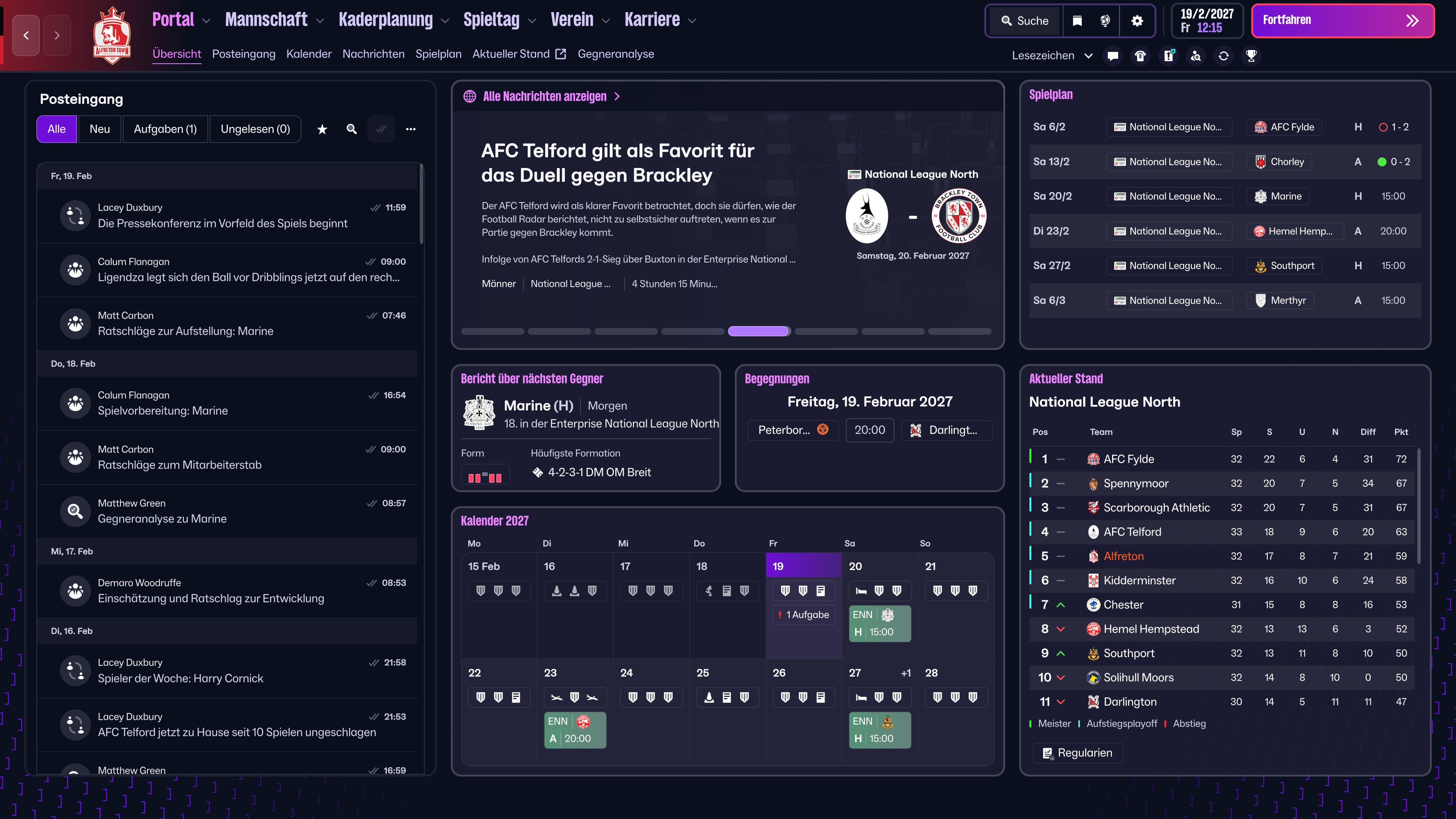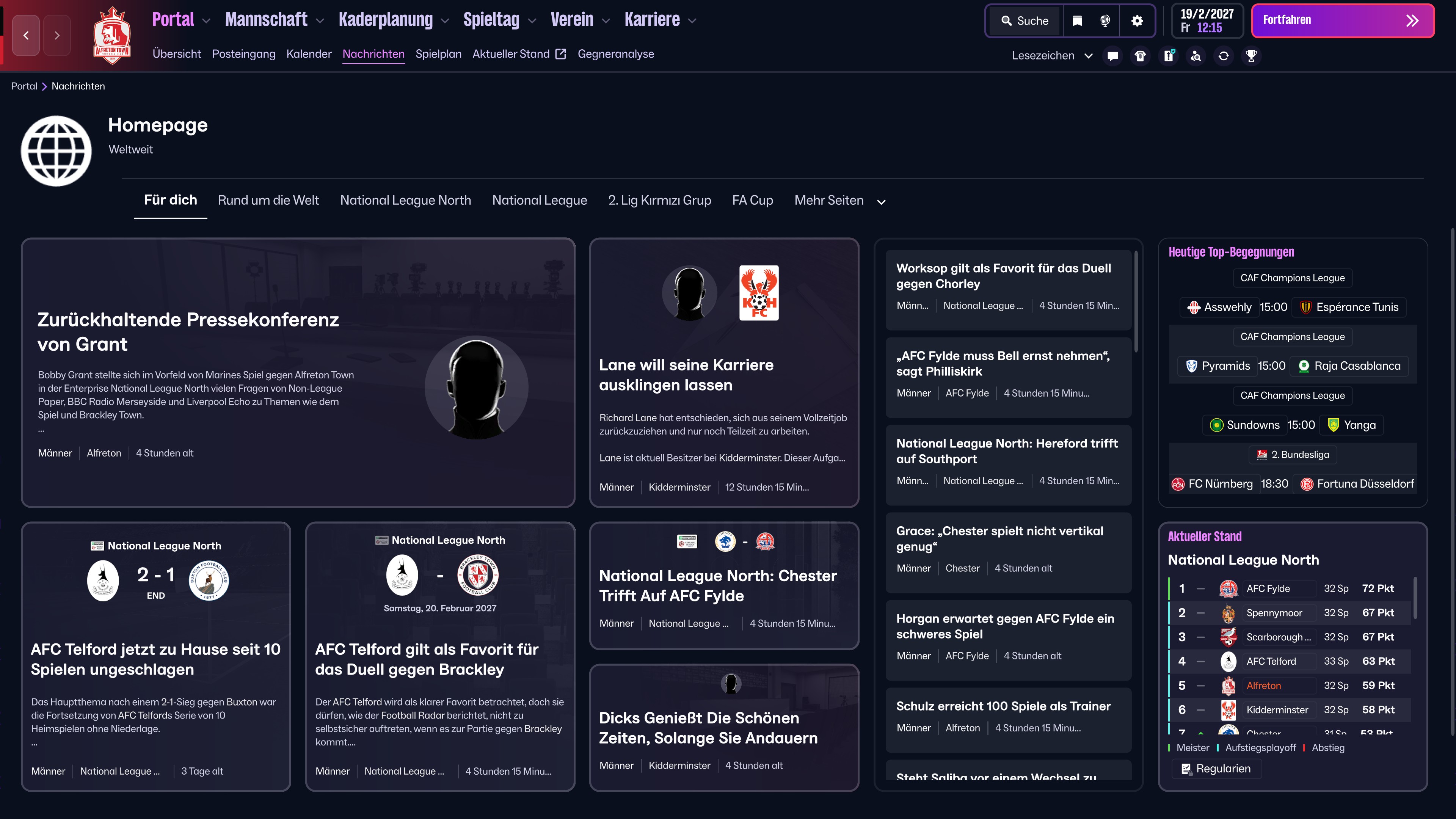 - bei einem bevorstehenden Pokalspiel hat der Spieler keine Möglichkeit zum komfortablen Auswählen der aktuellen Ligatabelle