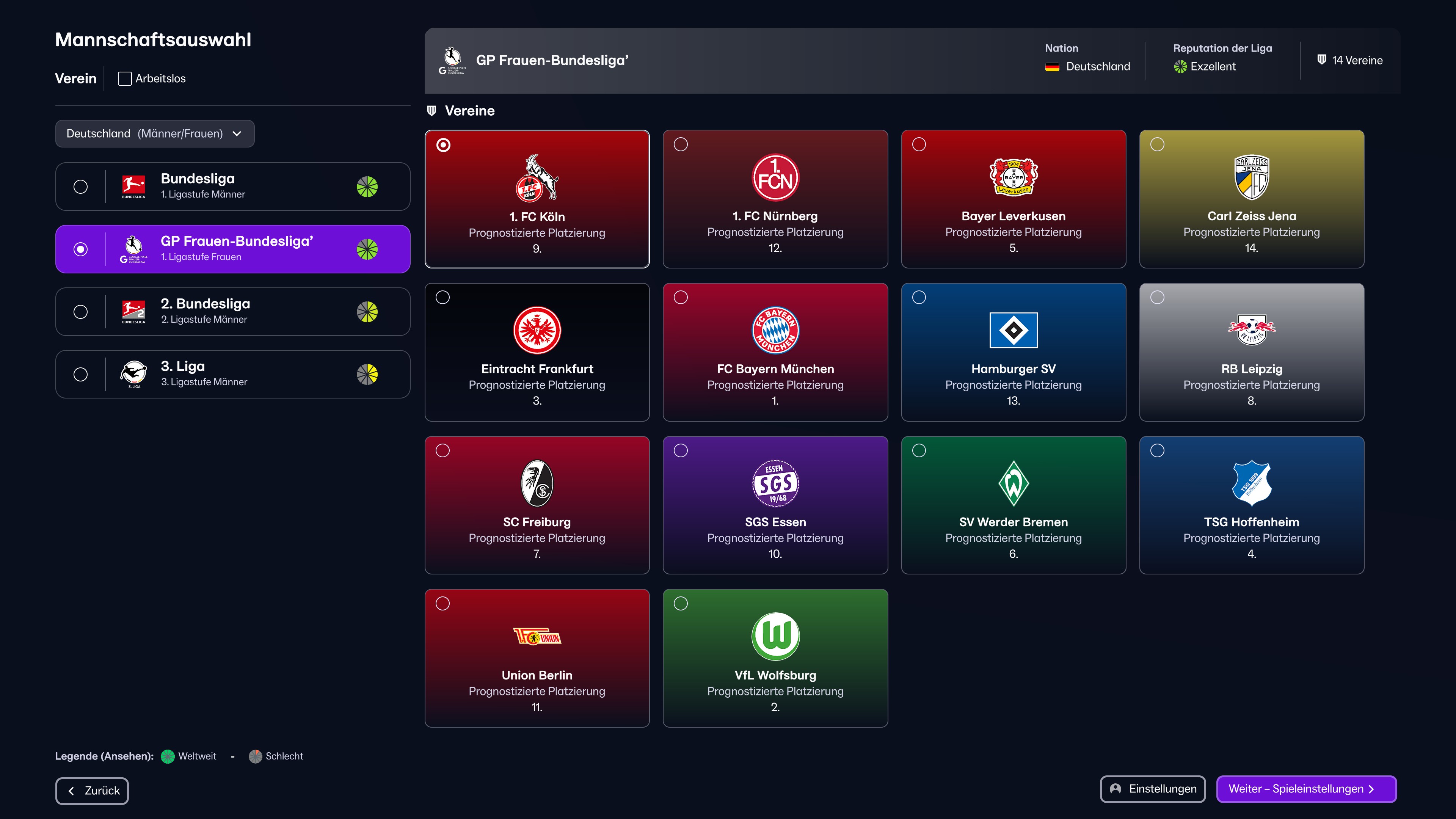 - zudem existieren Probleme in der korrekten Darstellung von Texten im Hinblick auf das Gendering. So kommt es bei der Übernahme einer Herrenmannschaft in unterschiedlichen Screens immer wieder zu der Ausgabe "Sie ist...".