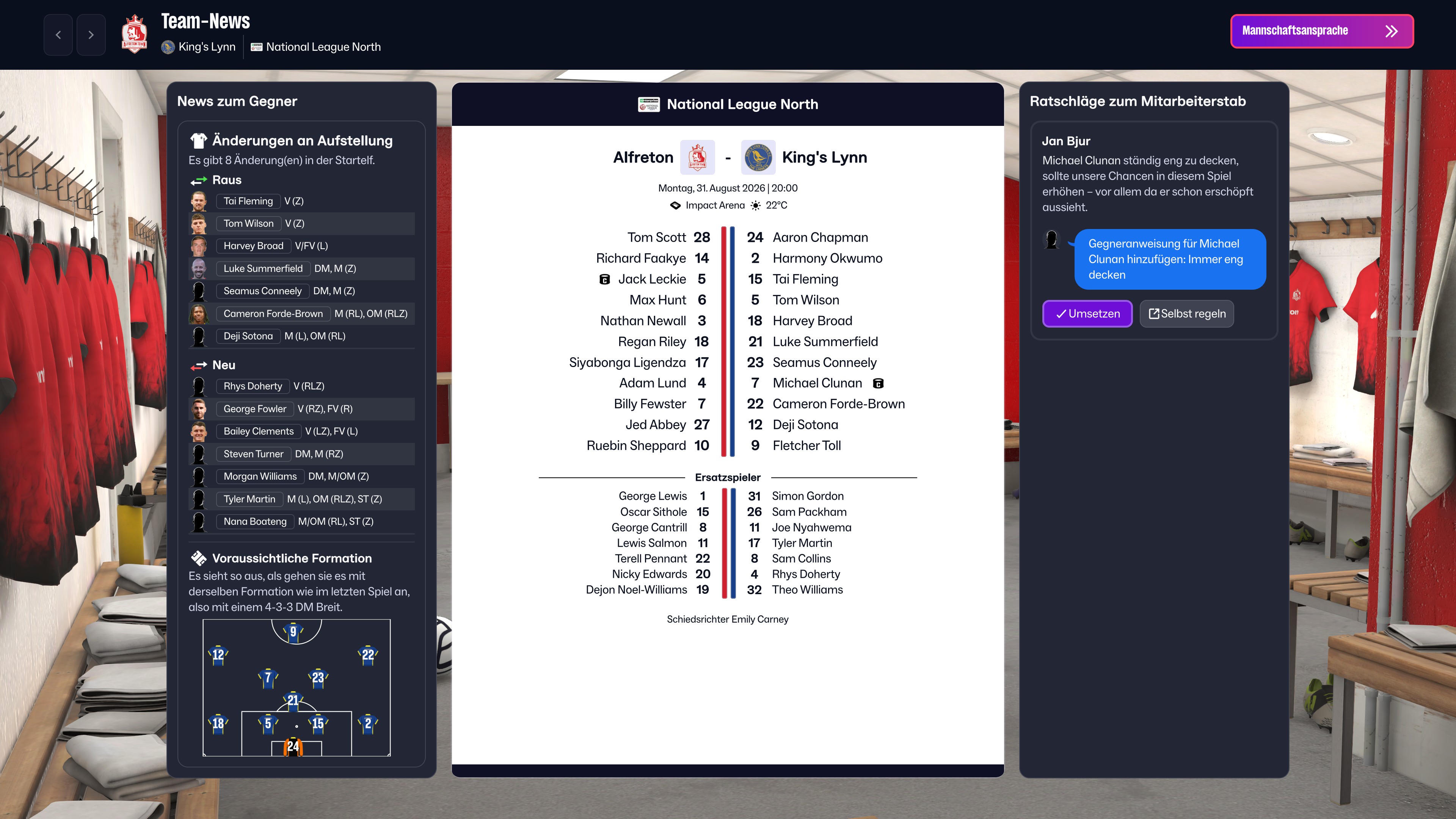 - ein interessantes Feature in der Saisonverbereitung ist der "Sichtungstag". Hierunter verbirgt sich nicht wie in der deutschen Konkurrenz der "We are Football"-Serie die Sichtung hoffnungsvoller Jugendspieler. Vielmehr handelt es sich im Football Manager 26 insoweit um ein Match, in dem vertragslose Spieler ihr Können demonstrieren können. Insbesondere bei fehlendem Transferbudget in den unteren Ligen ist dies zugleich eine willkommene Möglichkeit zur Verpflichtung ablösefreier Spieler.