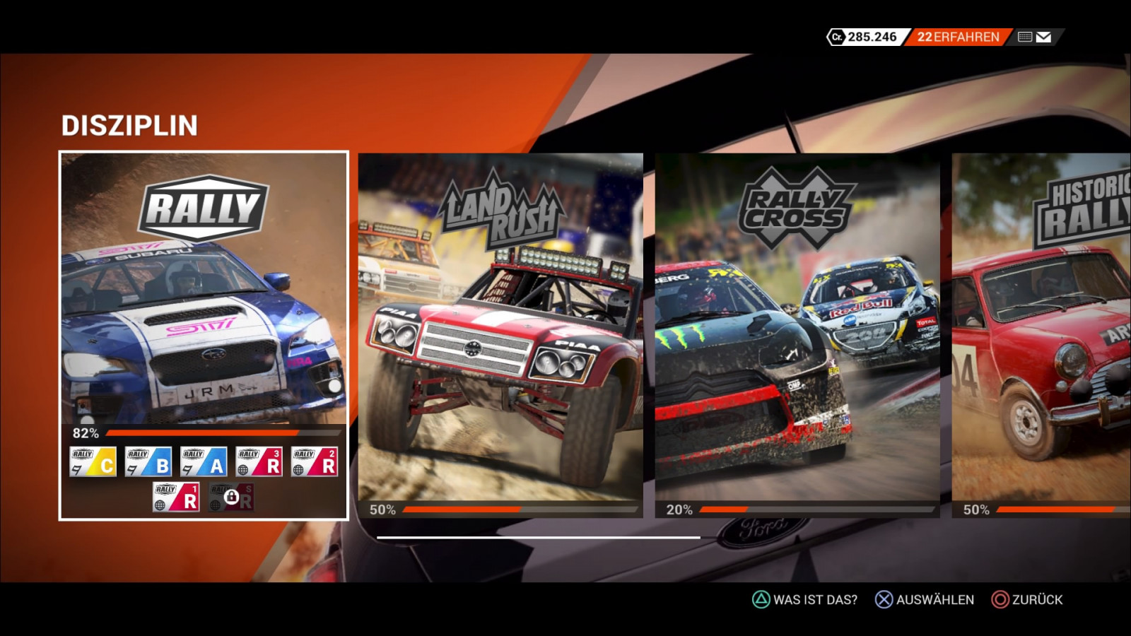 DiRT 4 kennt vier Wettbewerbe